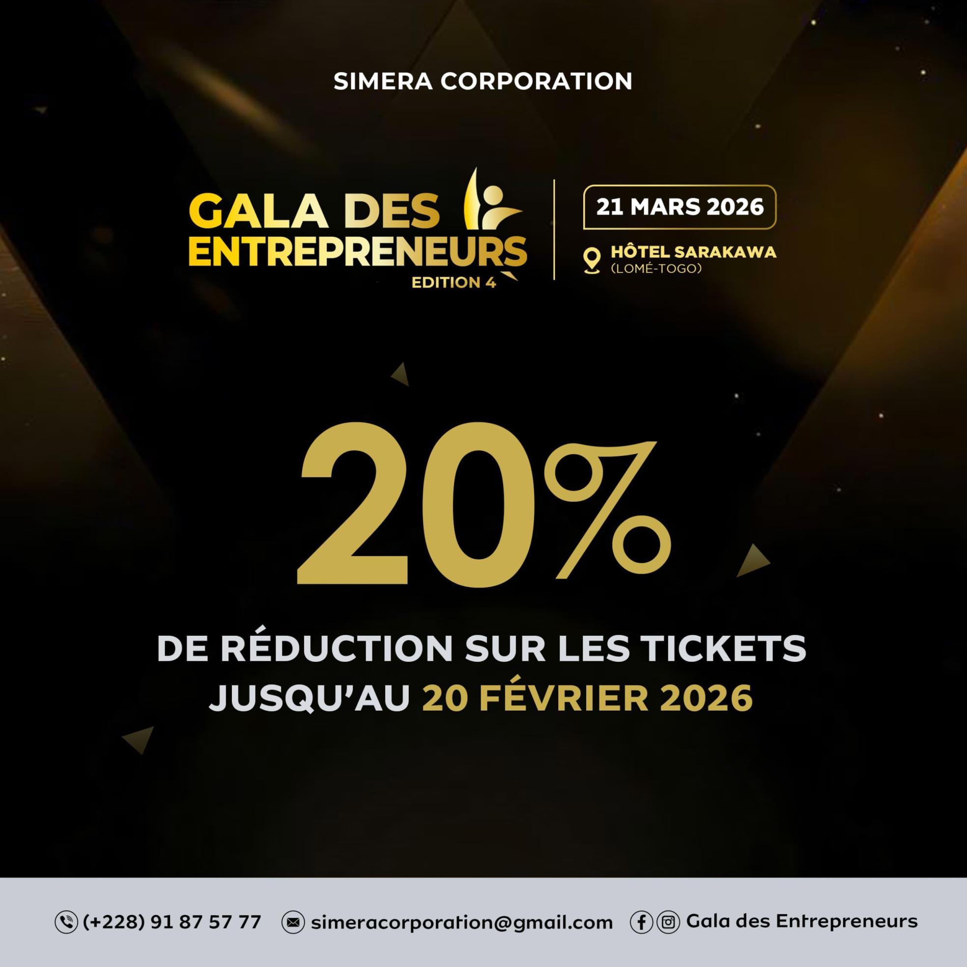 Gala des Entrepreneurs 2026 : une opportunité à ne pas manquer avec une réduction de 20% sur les tickets